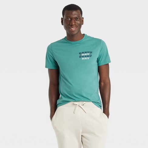Men S Printed Standard Fit Short Sleeve Crewneck T Shirt Goodfellow Co Blue Letters Target